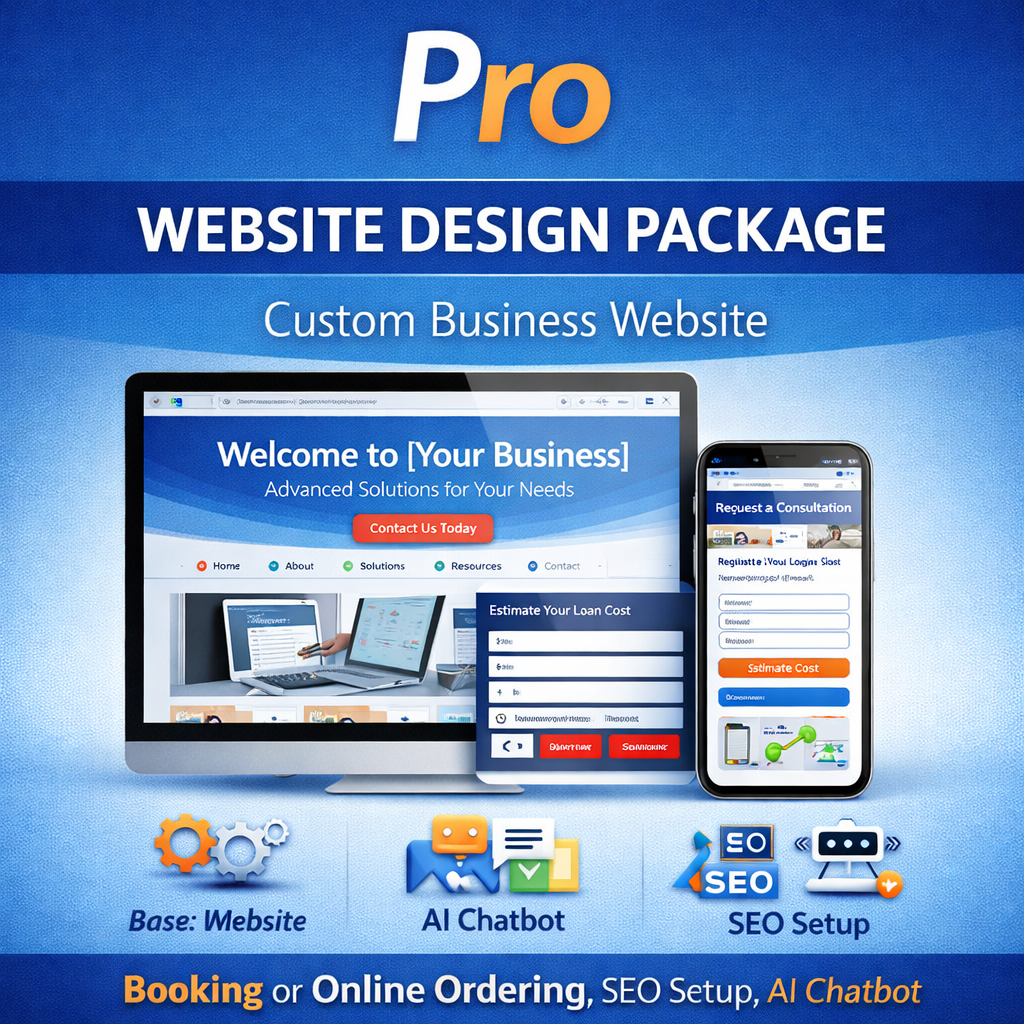 Pro Website Design Package, Custom Business Website, Advanced Automation, Ai Chatbot With Sms And Email, Seo Optimization, High-converting Website